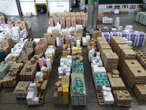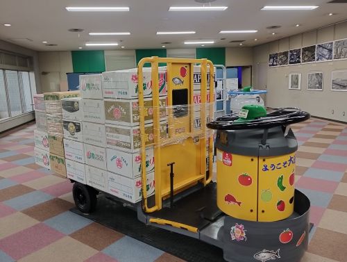 2階から見下ろす形なのだが、たーくさんの段ボールが積まれていて、キャベツや、玉ねぎ、ミカンなど入っていた。