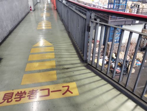 そこから、「見学者コース」と黄色でわかりやすく、矢印が床に書かれているので、そこに沿って歩く。