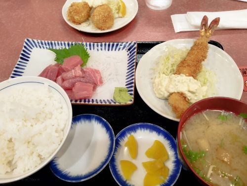 ここで、翔君が、本マグロ中トロ&大エビフライにほたて単品を付けて、おいしそうに食べていた。