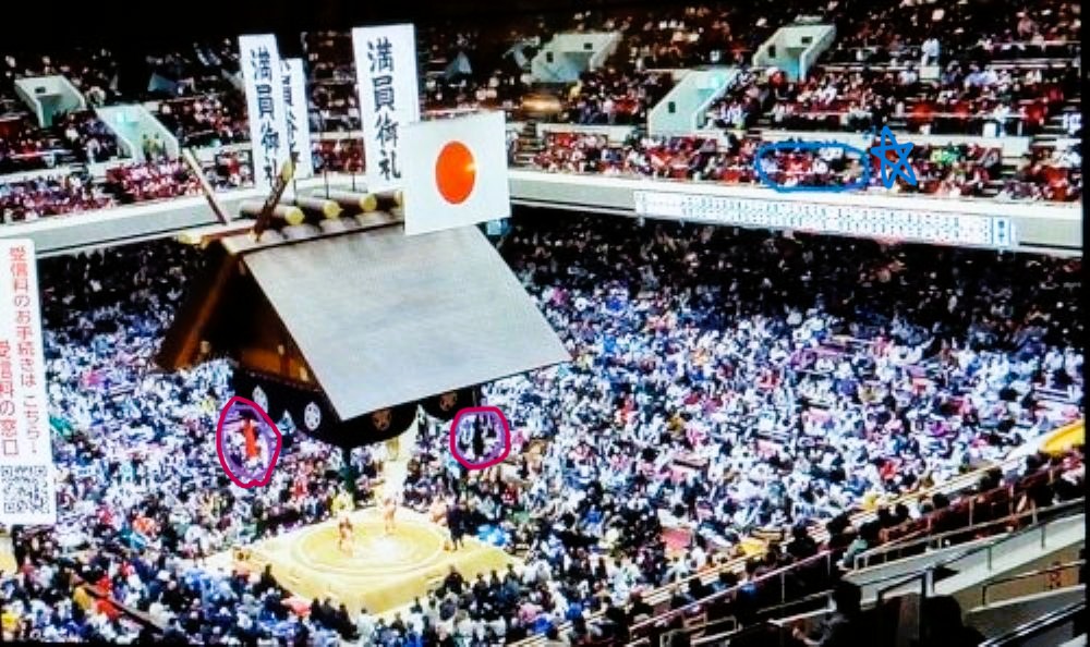取り組み表のある電光掲示板のすぐ上、青でマークした、位置だ。